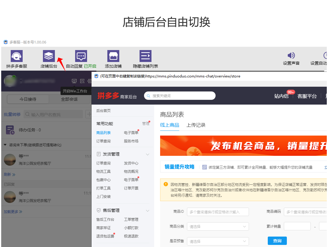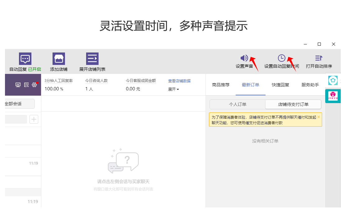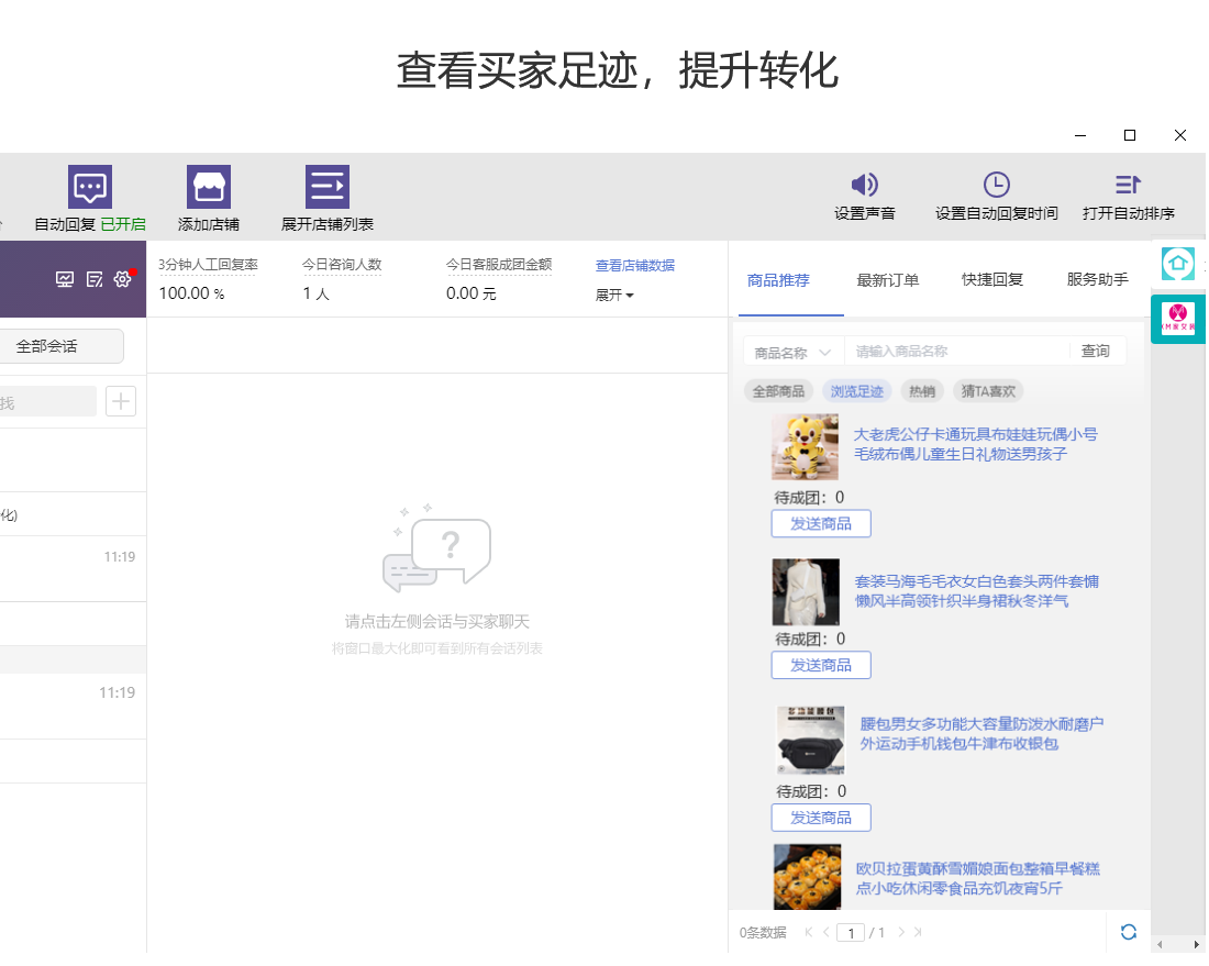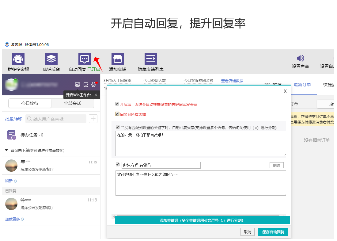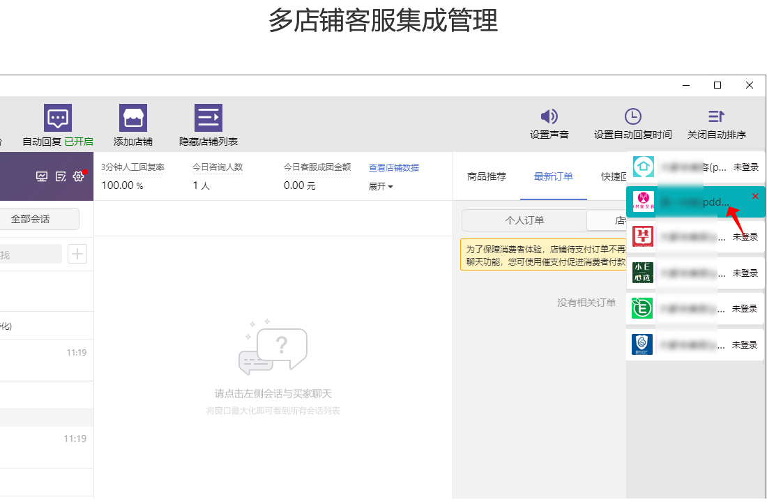 一款支持多店铺商家在同一个界面登录多个账号回复买家咨询,并支持自动回复的软件